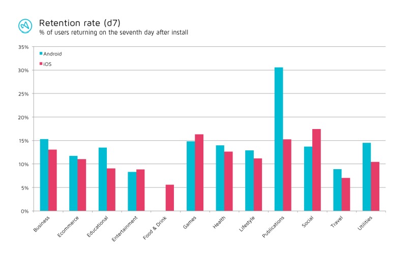 Kampf um die Aufmerksamkeit der Nutzer: Ist eine App erst einmal auf dem Smartphone installiert, heißt das noch lange nicht, dass sie auch genutzt wird. App-Publisher wissen das und kämpfen u.a. mit Push-Nachrichten darum, den Nutzer bei der Stange zu halten. Das gelingt allerdings nur in den seltensten Fällen, wie eine Studie des App-Analytics-Anbieters adjust zeigt. Zwar liegt die Retention Rate (die Kennzahl sagt, ob Nutzer die App nach dem Download auch nutzen) bei Android-Apps (14,38 Prozent) im Schnitt höher als bei iOS (11,49 Prozent). Doch bei der Aktivität (Häufigkeit und Dauer) gibt es nur geringfügige Unterschiede. Die Studie zeigt, dass Spiele-Apps bis zu zehn mal länger genutzt werden, als andere Apps. Weitere Besonderheiten: Apps zu Büchern und Magazinen binden pro Tag mehr Nutzer als Apps jeder anderen Kategorie. Das höchste Engagement weisen dagegen soziale Netzwerke und Messaging-Apps auf. Die kategorieübergreifende Verweildauer liegt sowohl bei Android als auch iOS im Schnitt bei fünf Minuten je App, Gaming-Apps ausgenommen.