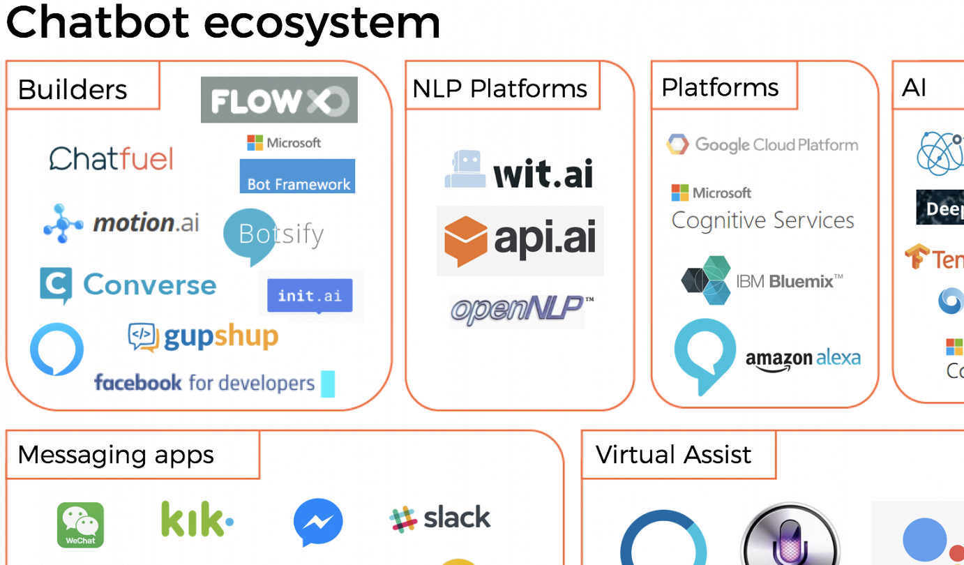 Das aktuelle Chatbot-Ökosystem im Überblick (Auszug, Seminarteilnehmer erhalten die komplette Übersicht, Copyright: Laurent Burdin)