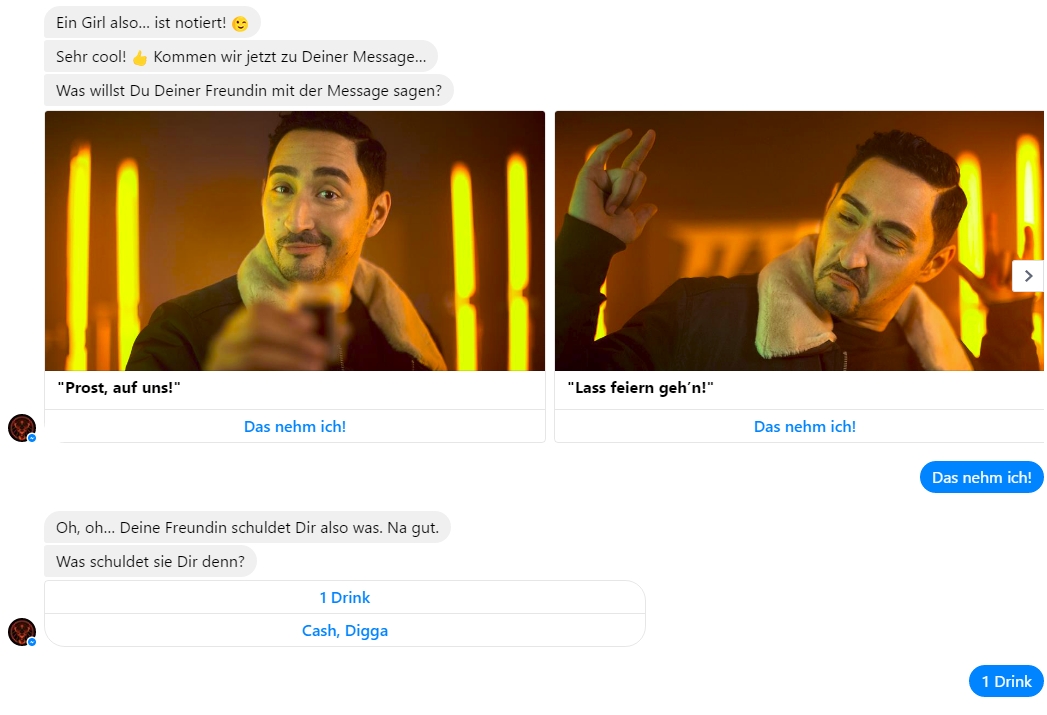 Felix Jahnen: Wenn man sagt „ich stehe im Stau“, sollte man eher sagen „ich bin der Stau“. Vielleicht sind wir ja gerade der Hype, wenn wir mitmachen. Chatbots können ganz klar Aufgaben übernehmen, wenn ich direkt digitale Conversions machen kann und Beschwerden oder Rückfragen erlauben will oder muss. Die Spracherkennung wird immer besser (Siri, Alexa, …) und Chatten ist im Aufwind – viele haben vergessen, dass Sie ein Telefon in der Hand halten und verabreden sich lieber einfach per Whatsapp als zu telefonieren. Alles Anzeichen dafür, dass alles was auf einem natürlichen Dialog per Text basiert, Aufwind hat. Wenn man aber eine Spirituosen-Marke von 1878 ist und man mich eigentlich nur im Regal und an der Bar kaufen kann, ist ein Chatbot natürlich ein Experiment.