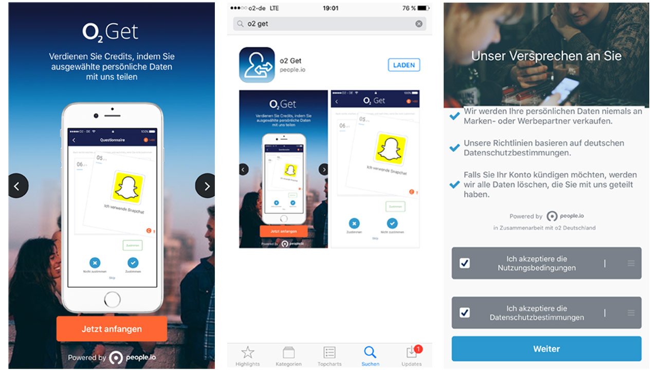 Mit dem Start-up Telefónica Next sollen Daten analysiert und für Industrie und Handel gewinnbringend aufbereitet werden, um daraus eine solide Basis für strategische Entscheidungen zu gewinnen. Dazu bedarf es natürlich in erster Linie jeder Menge Daten, dem neuen Rohstoff der Zukunft. Und die besten Daten stammen im Idealfall von den Nutzern selbst. Mit der neuen o2 GET App geben die Nutzer Daten ein und erhalten im Gegenzug Prämien. An sich kein neues Modell. Aber Telefónica verspricht, dass die Nutzer stets die Hoheit über die eigenen Informationen behalten.
