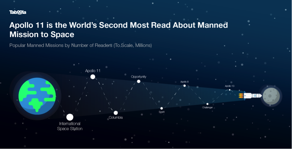 Für die Untersuchung hat Taboola im Zeitraum 1. August 2018 bis 30. Juni 2019 das Online-Leseverhalten von mehr als 100 Millionen Unique Usern weltweit und 270 Millionen Pageviews mit insgesamt mehr als 300 Millionen Leseminuten von 38.218 Artikeln ausgewertet, die den Namen einer der 13 Astronauten oder einer der 11 bemannten Raumflüge enthielten.